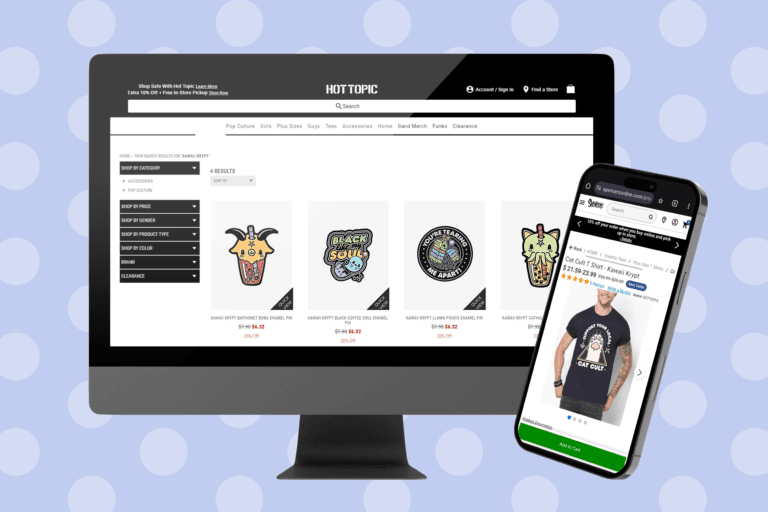 Sold at retailers such as Hot Topic & Spencer's Gifts.