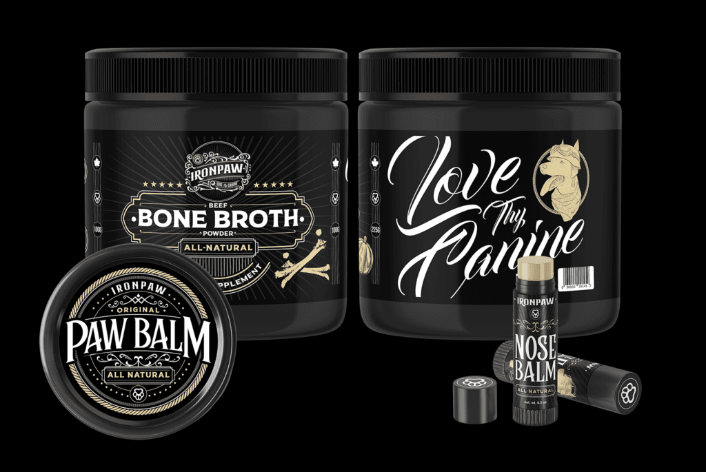 Branding for a bold canine supplement brand that blends barbershop grit with tattoo-style edge.