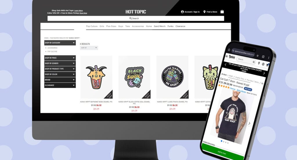 Sold at retailers such as Hot Topic & Spencer's Gifts.