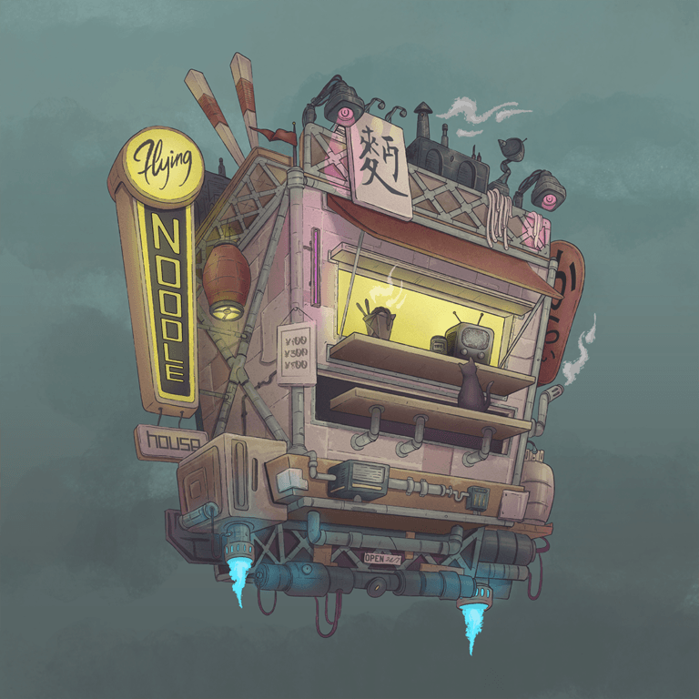 My personal illustrations are inspired by science fiction, nostalgia, and dystopian themes. I like exploring the intricate workings of machinery, often incorporating mechanical elements into my art. I’m always experimenting with perspective, playing with angles and scale to learn more about how to create feelings and emotions through illustration.